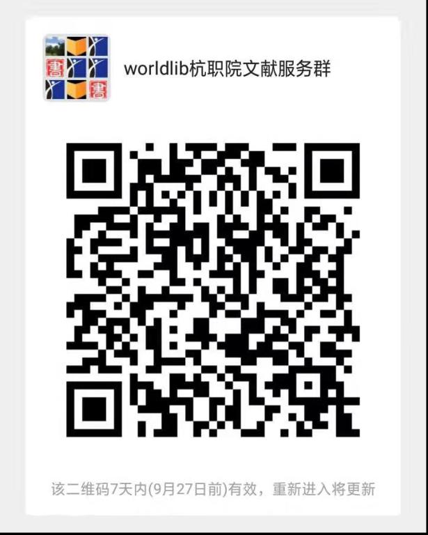 Worldlib杭州职院文献服务群(微信群人工服务)已经建立,各位老师进群后,可以只在群里提出文献需求,由Worldlib团队人工在线进行文献服务。