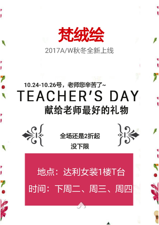 1024日—26日期间,梵绒绘——杭州启乐服饰有限公司自营品,来校开展秋冬季专场特卖活动梵绒绘定位中高端私人订制会所。品牌的质量,工厂的价格。梵绒绘打造让人人都买的起的奢侈品质。