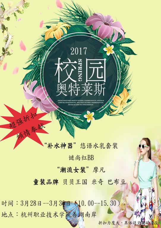 此次“2017约惠春天”校园奥特莱斯联合特卖会品种多样,优惠幅度较大,欢迎广大师生前往选购。
