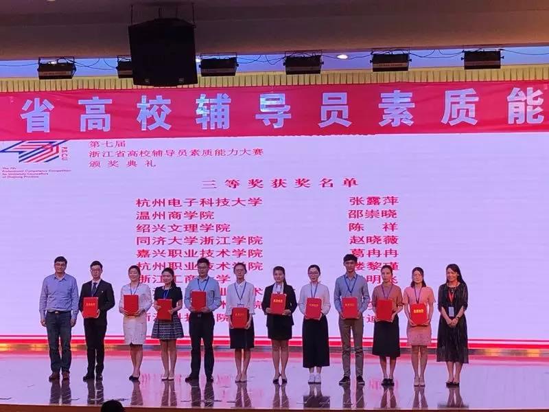 5月9日至11日,由浙江省教育厅主办的第七届浙江省辅导员素质能力大赛在浙江师范大学举行,来自全省各高校的98名辅导员参加了本届比赛。我校友嘉机电学院辅导员楼黎瑾通过笔试、案例分析、理论宣讲和谈心谈话四个环节的激烈角逐,最终荣获大赛三等奖。
