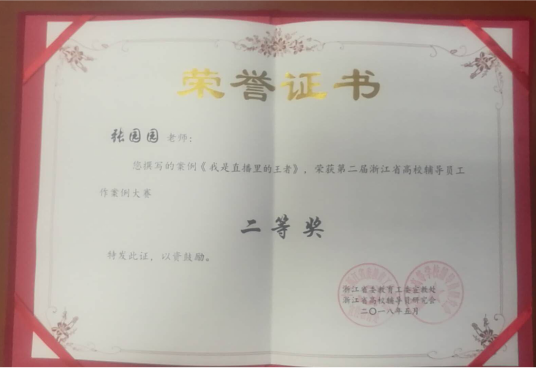 此外,青年汽车学院辅导员张园园撰写的《我是直播里的王者》荣获第二届高校辅导员工作案例大赛二等奖。